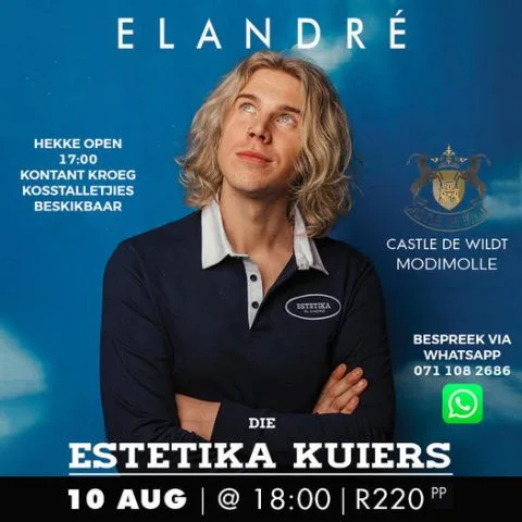 Castle De WildtElandré by Castle de Wildt in Modimolle. 10 Augustus om 18:00. Hekke open om 17:00 Kontant Kroeg en Kosstalletjies beskikbaar Moet dit nie misloop nie. Kaartjies kan via Whatsapp bespreek word by 071 108 2686.